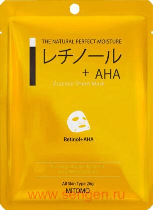 Тканевая маска для лица MITOMO Arbutin + Galactomyces Mask, с ретинолом и АНА-кислотами, 1шт.