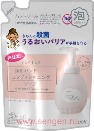 Нежное мыло-пенка LION KireiKirei Conditioning Soap, с увлажняющими компонентами, для бережного ухода за кожей рук, сменная упаковка, 400мл.