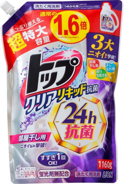 Жидкое средство для стирки белья LION Top Clear Liquid Antibacterial, с антибактериальным эффектом, мягкая экономичная упаковка с крышкой, 1160г.